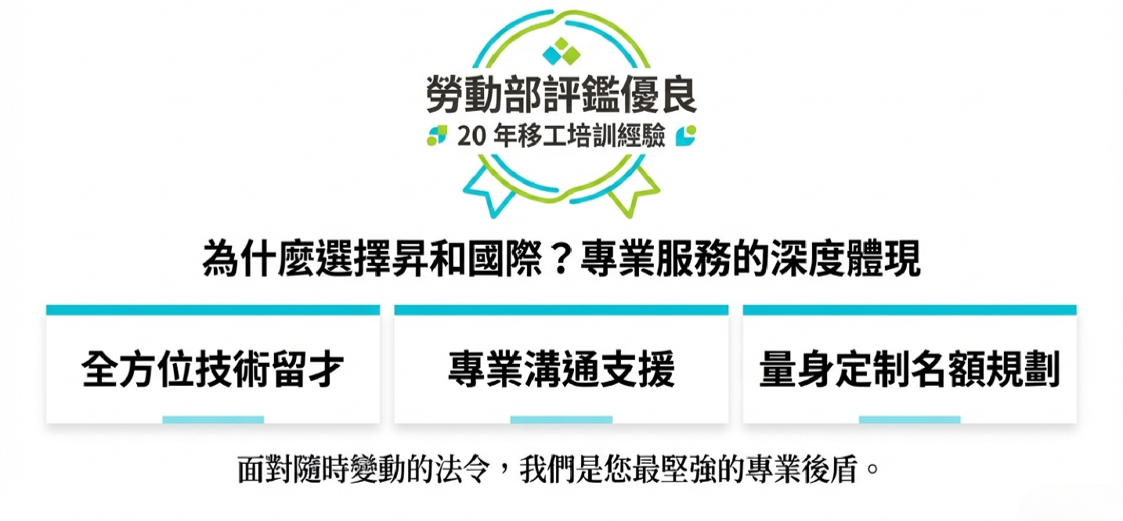 目前政府正積極推動「外國技術人力」方案,旨在將優秀的資深員工轉化為企業長期資產。這對於面臨技術斷層的製造業與養護機構而言,無疑是一大福音。